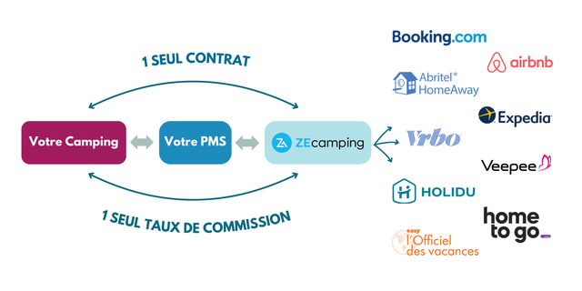 ZEcamping est une solution de multidiffusion dédiée aux campings, directement connectée au PMS eSeason. La plateforme permet aux exploitants de diffuser automatiquement leurs hébergements, tarifs et disponibilités sur ze-camping.fr ainsi que sur les principales plateformes de réservation comme Airbnb, Abritel ou Veepee.
